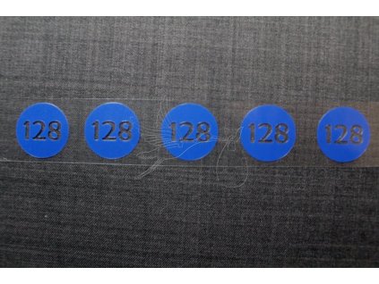 Velikostní nažehlovací štítek v červené barvě ve tvaru kruhu.