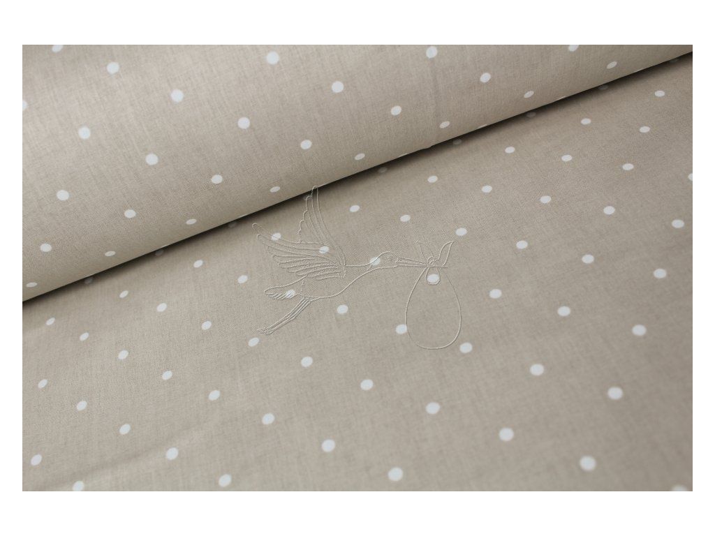 Bílé puntíky na tmavší ecru - bavlněné plátno, šíře 240cm - zbytek 0,5m