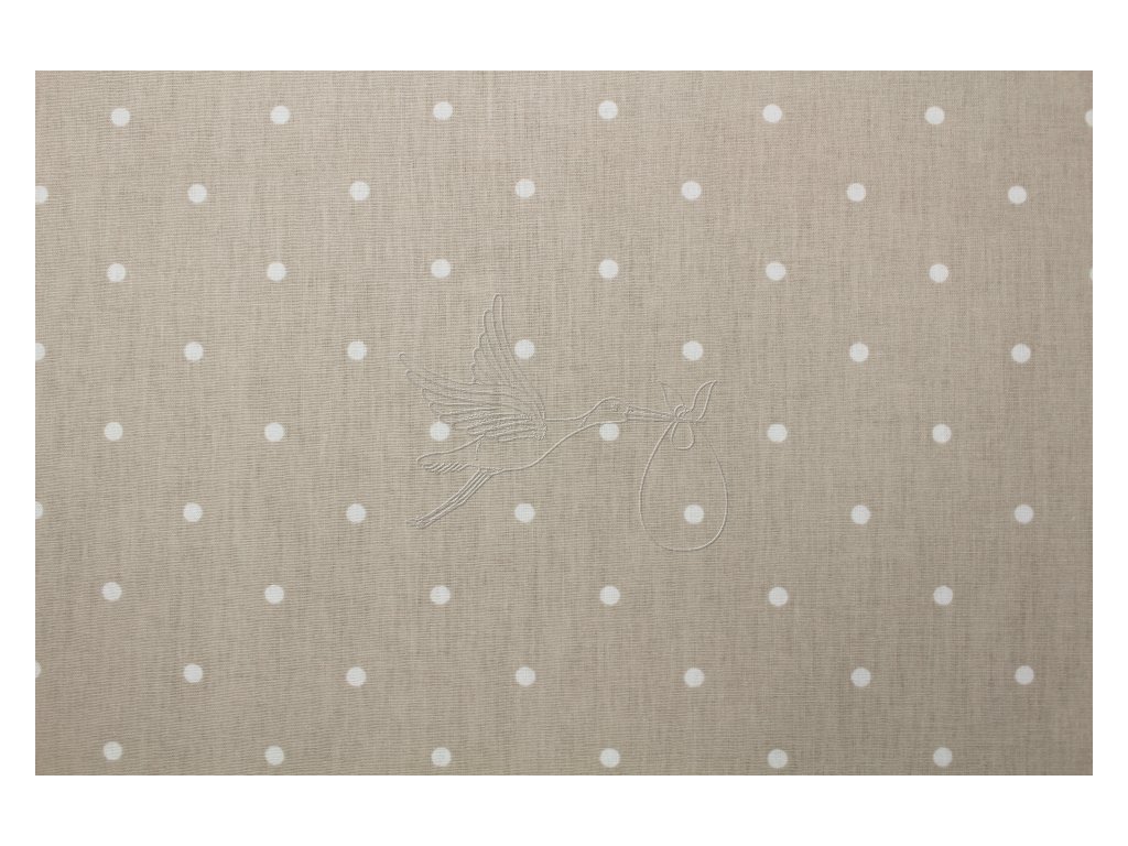 Bílé puntíky na tmavší ecru - bavlněné plátno, šíře 240cm