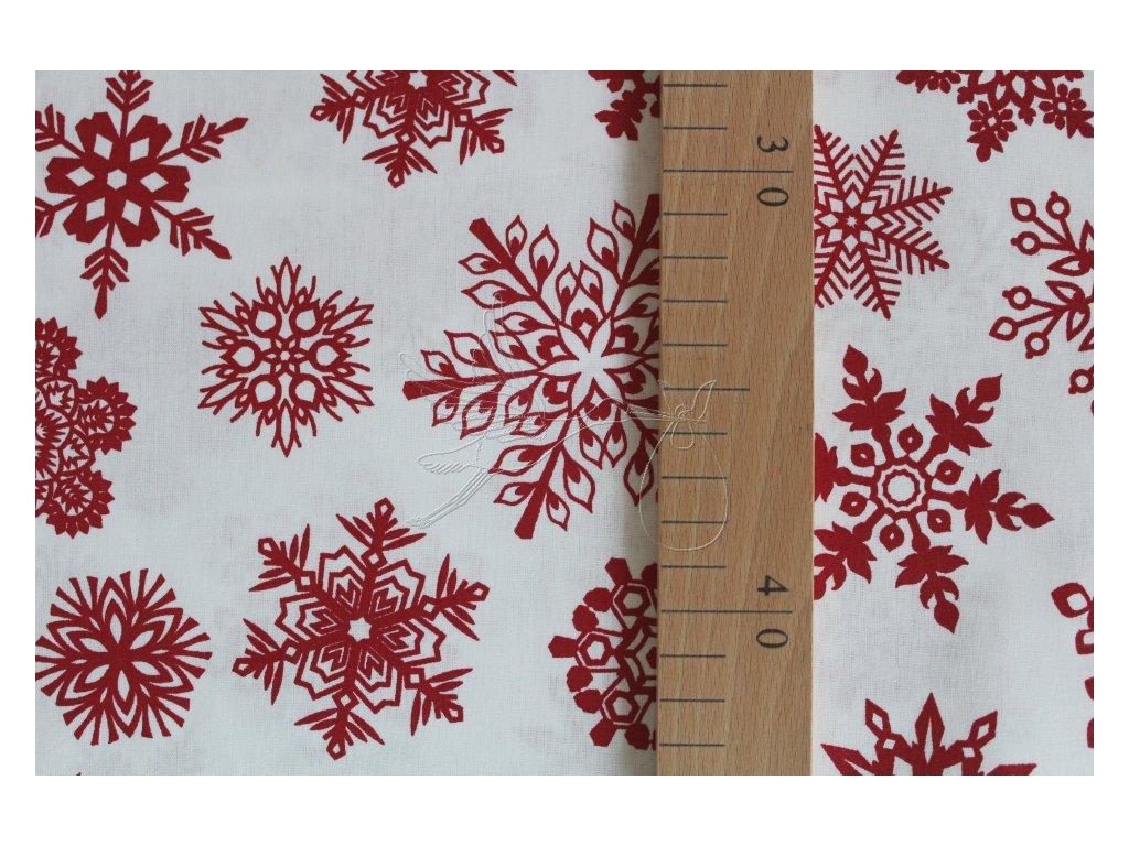 Červené vločky na bílé IV - bavlněné plátno, šíře 240cm - zbytek 0,39m