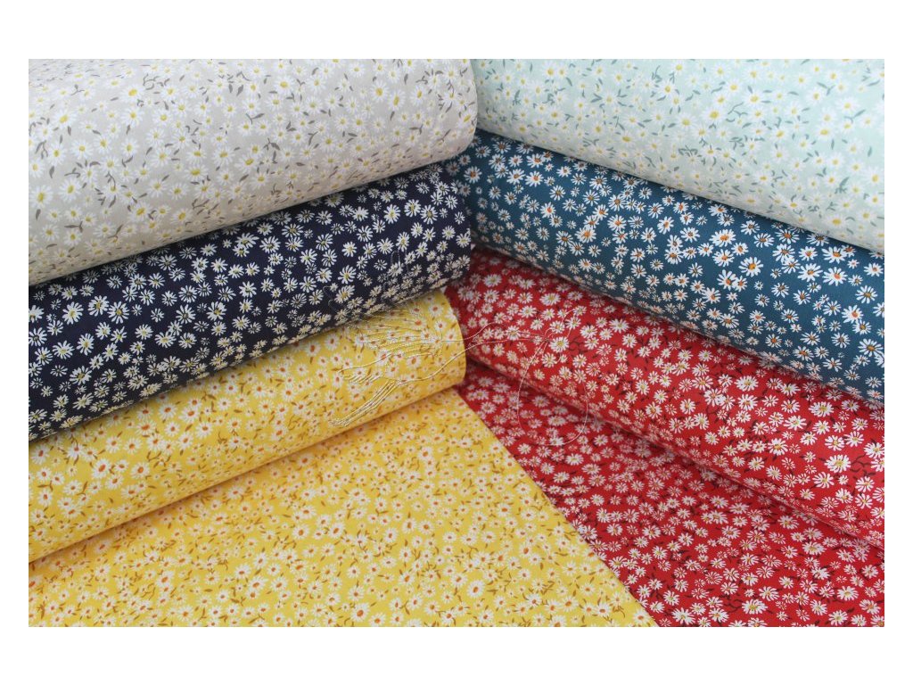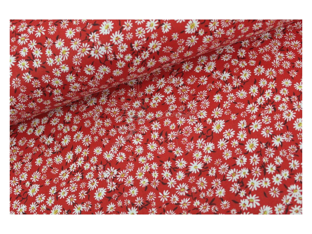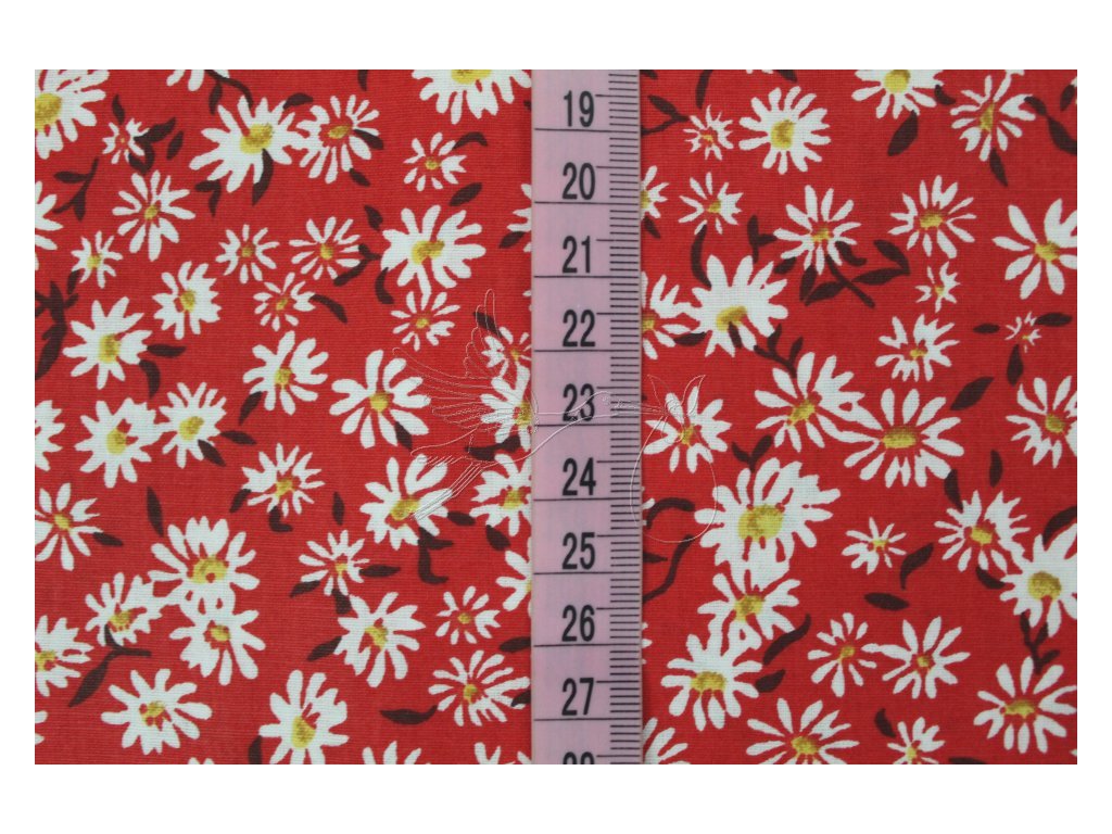 Kopretiny na červené - bavlněné plátno, šíře 240cm - zbytek 0,35m