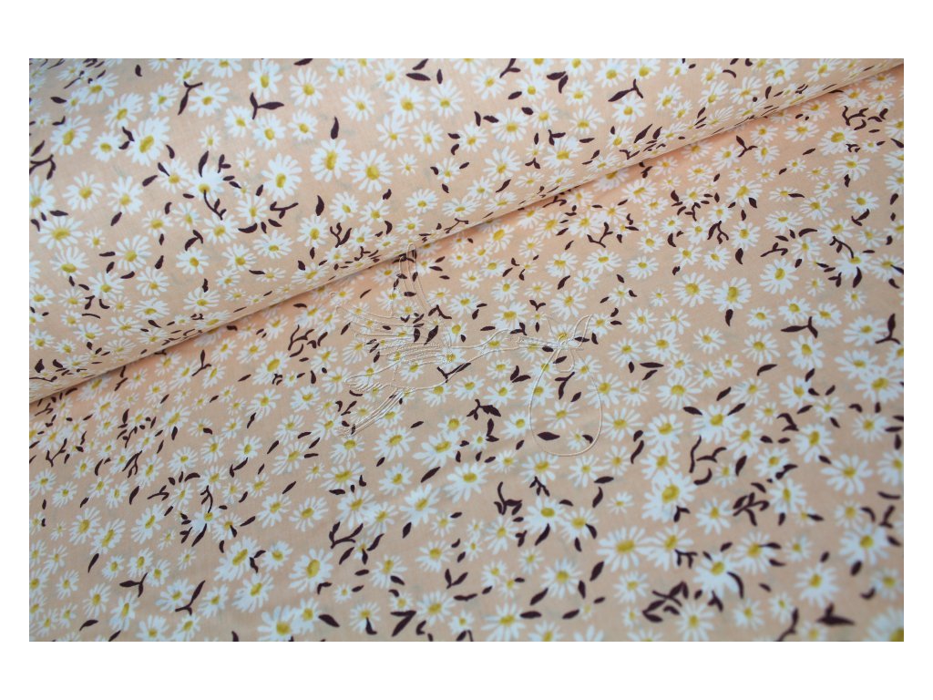 Kopretiny na meruňkové - bavlněné plátno, šíře 240cm