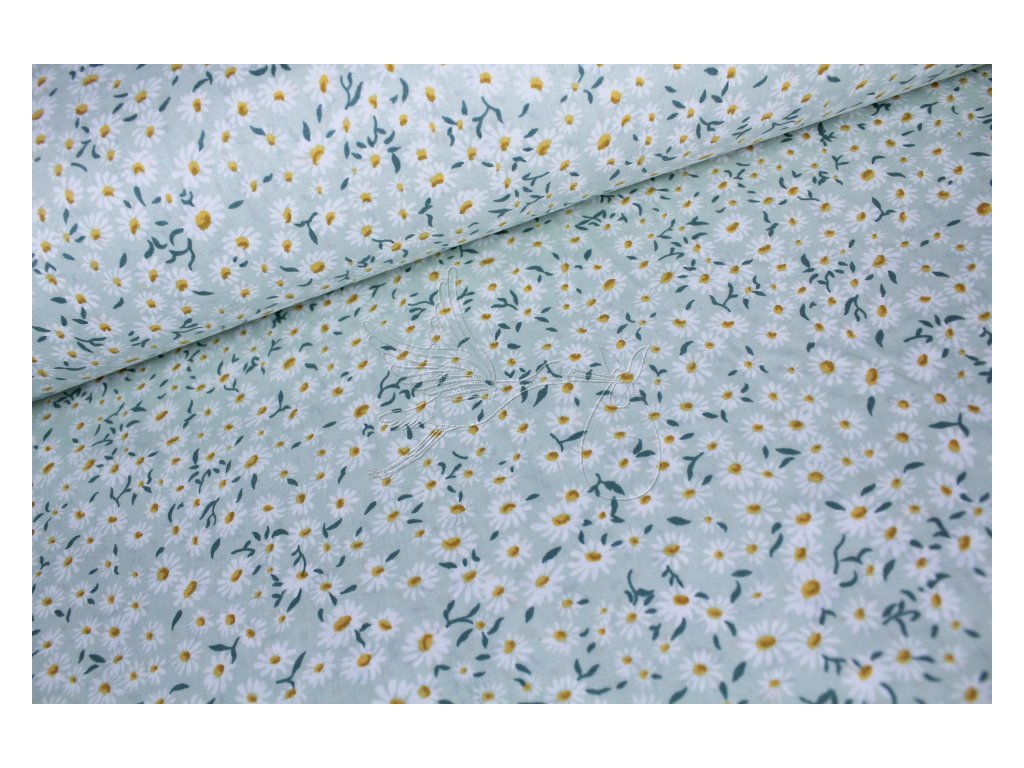 Kopretiny na mint - bavlněné plátno, šíře 240cm
