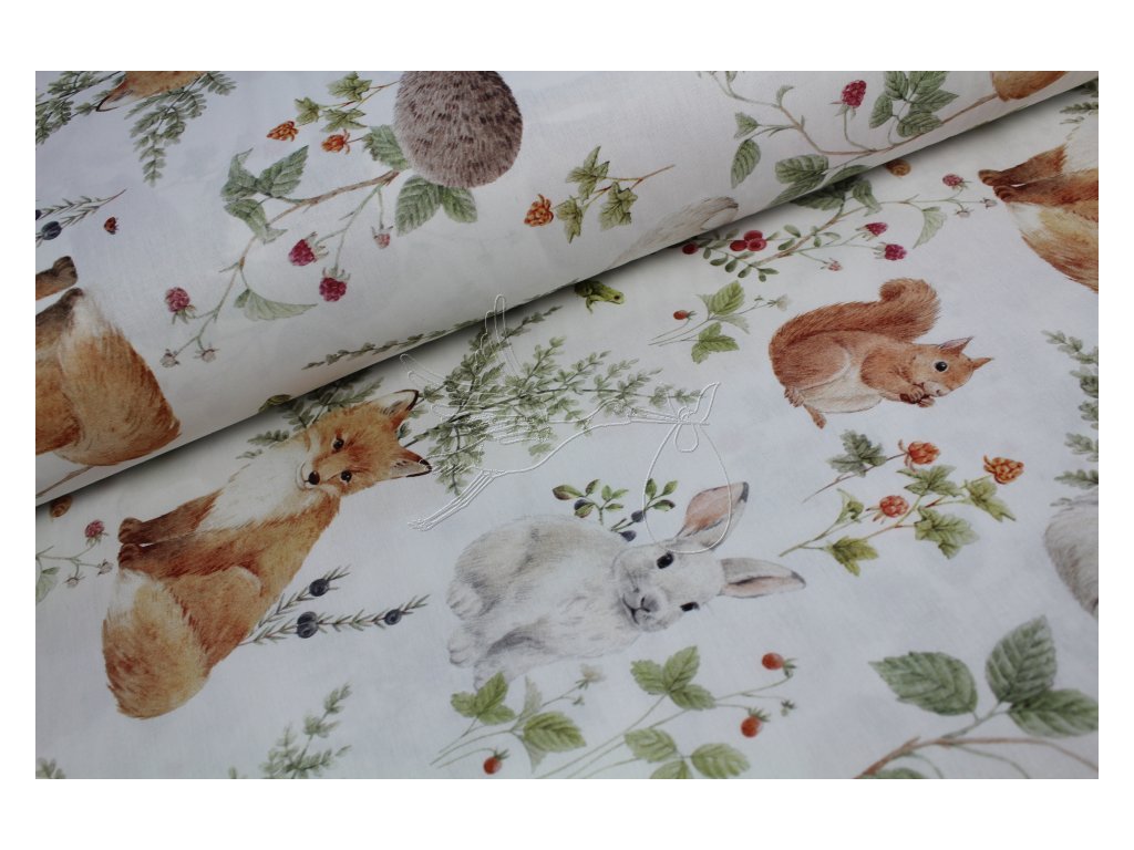 Lesní zvířátka - bavlněné plátno, šíře 240cm - digitální tisk - zbytek 0,65m
