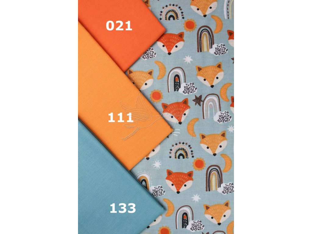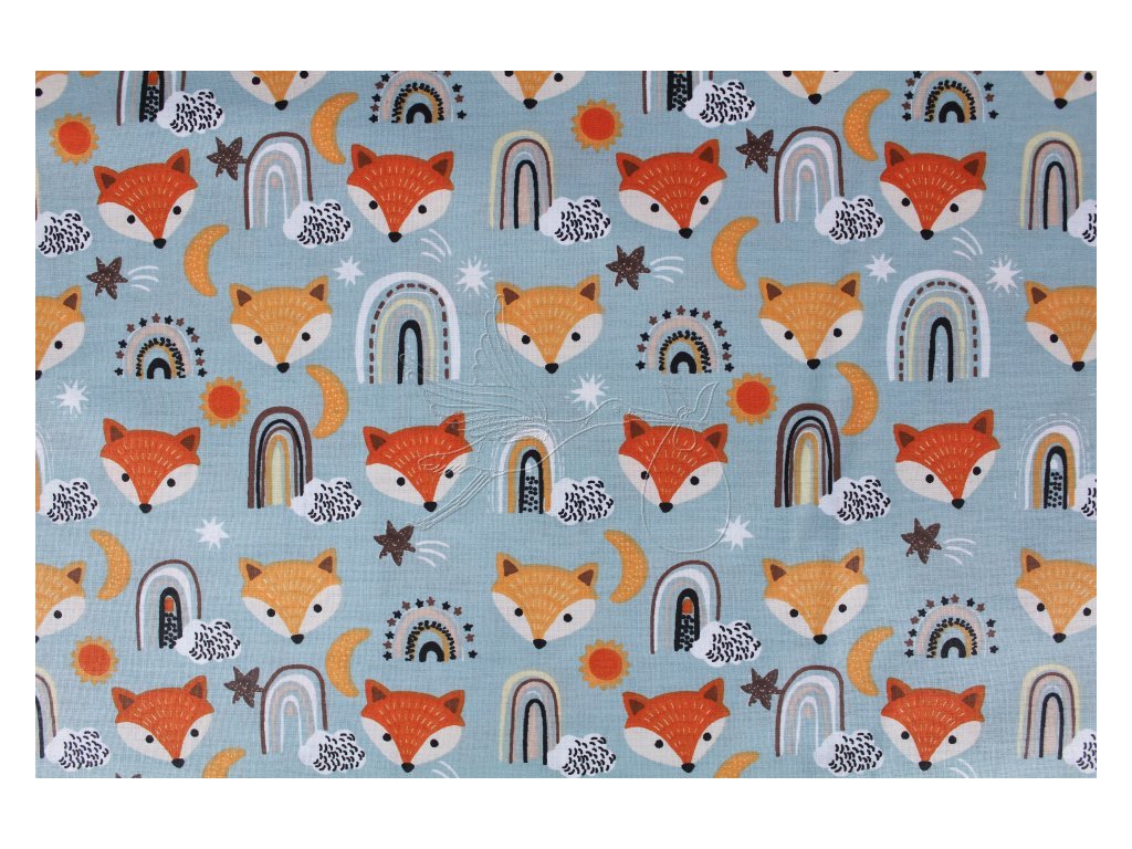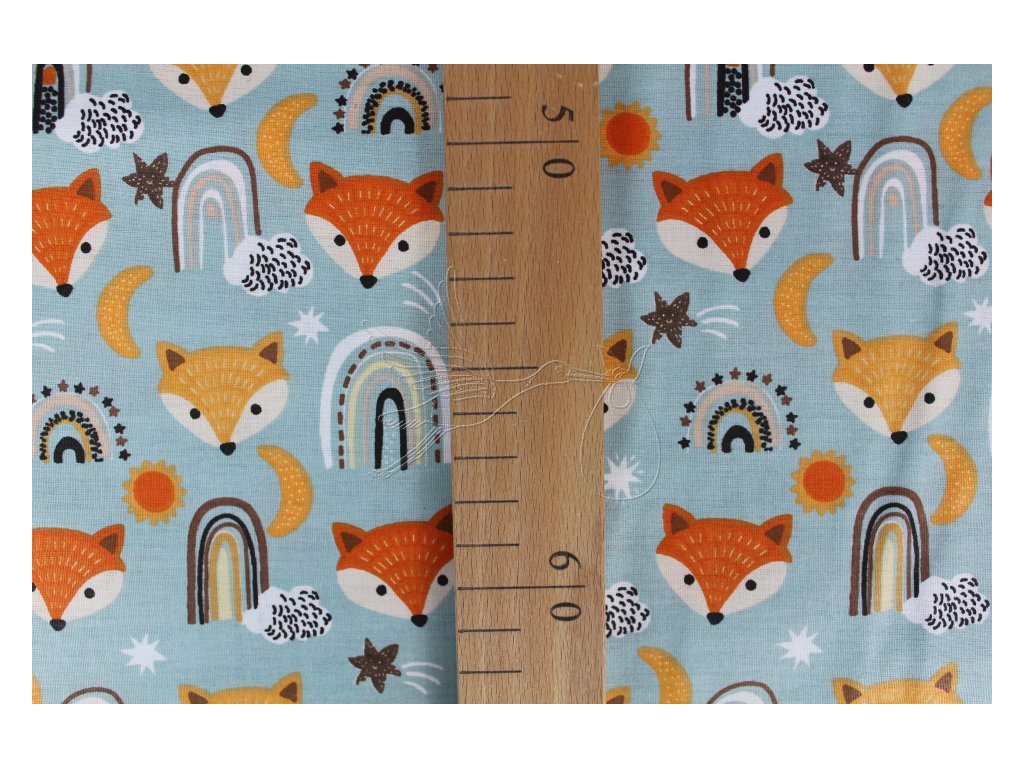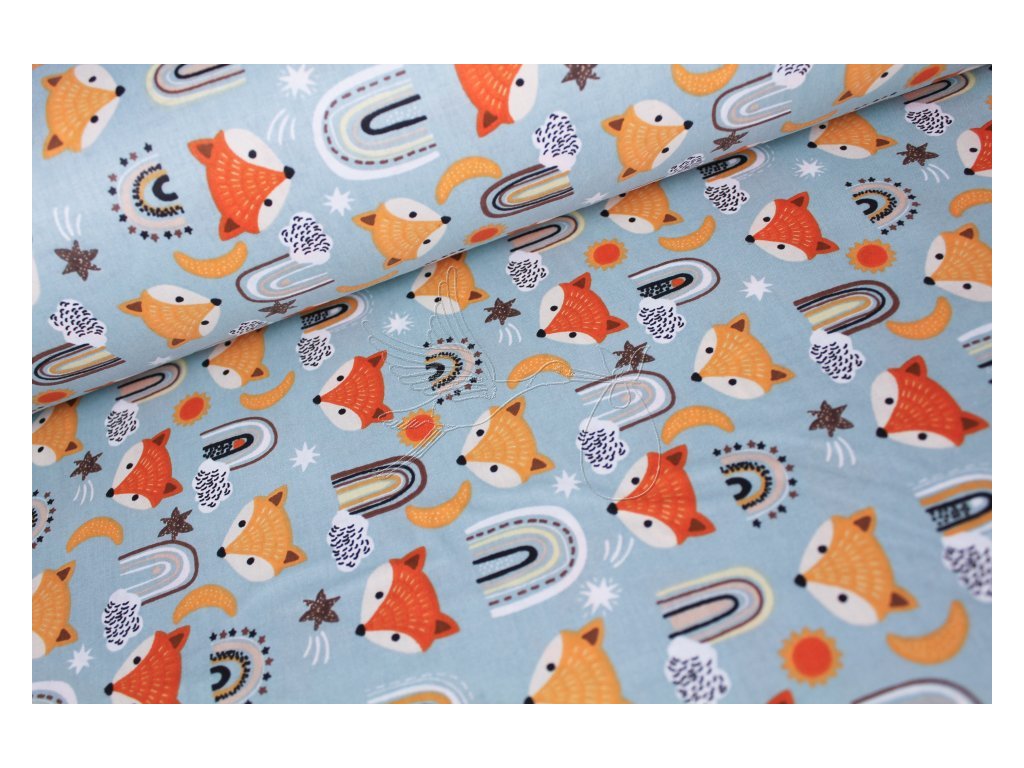 Lišky na mentolové - bavlněné plátno, šíře 240cm - zbytek 0,5m