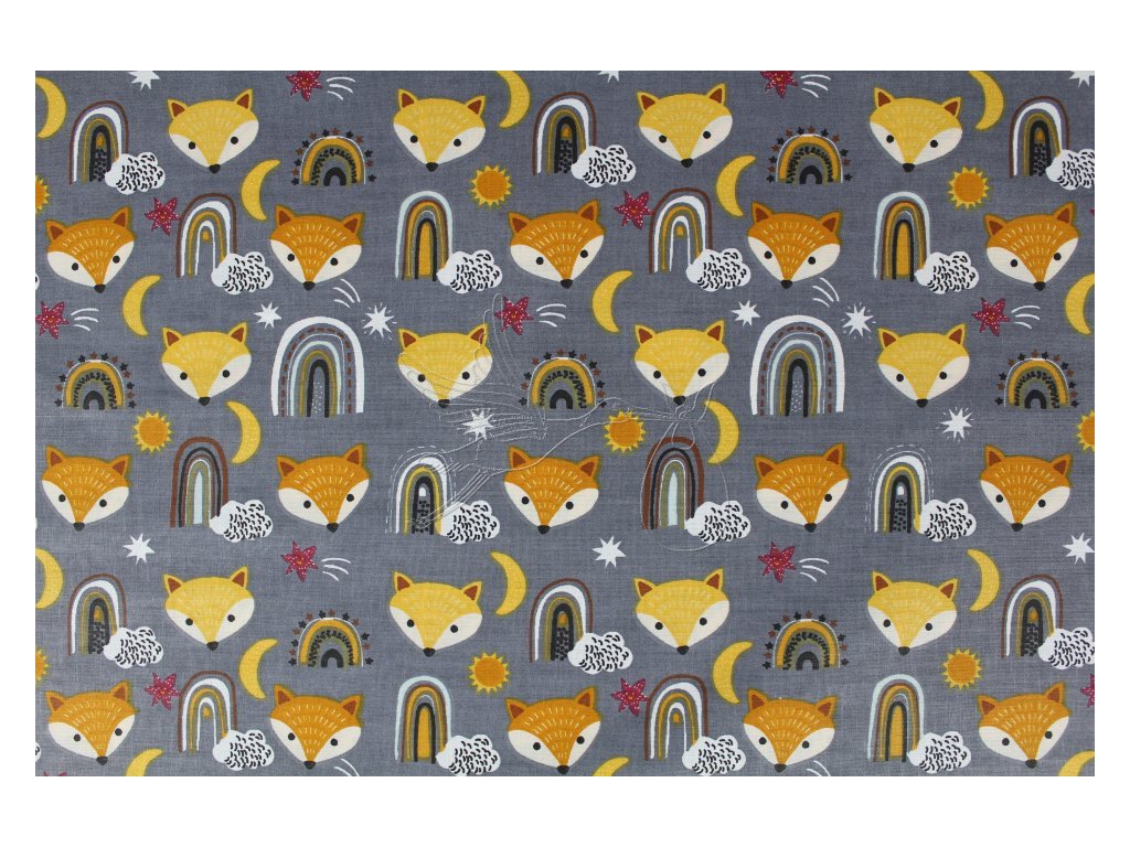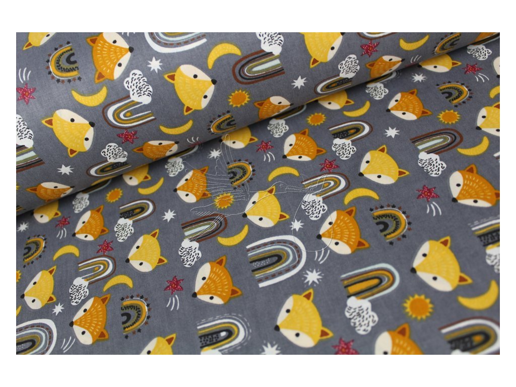 Lišky na tmavě šedé - bavlněné plátno, šíře 240cm