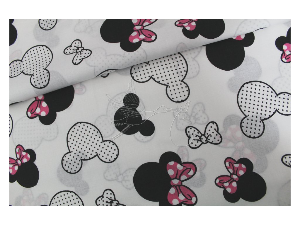 Mickey hlavy na bílé - růžová mašle - bavlněné plátno, šíře 160cm - zbytek 0,38m