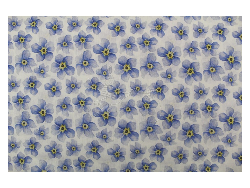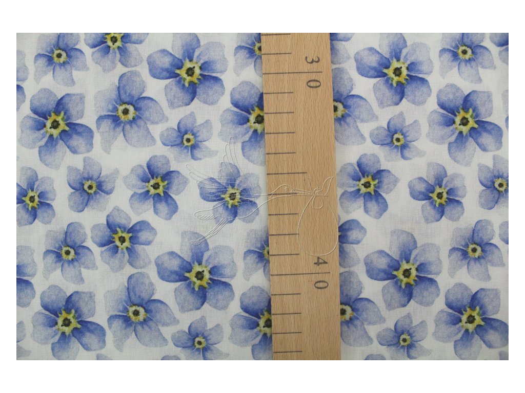 Modré květy na bílé - bavlněné plátno, šíře 220cm - digitální tisk - zbytek 0,5m