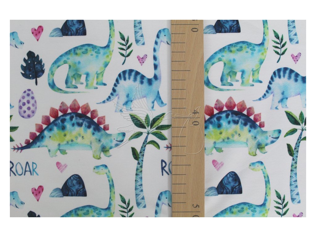 Nepočesaná teplákovina 180cm - Dinosauři na bílé - zbytek 0,3m