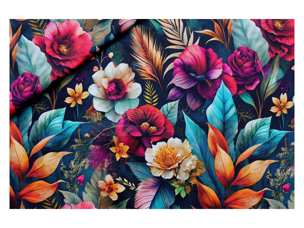 Nepočesaná teplákovina - Barevné květy - zbytek 0,26m