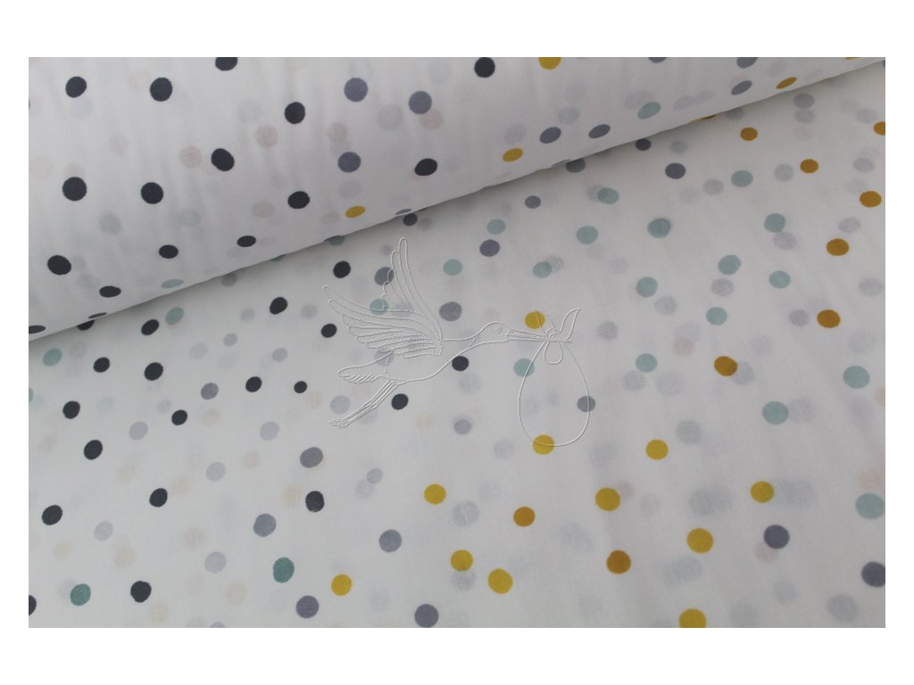 Puntíky žluto-šedé - bavlněné plátno, šíře 240cm - zbytek 0,37m