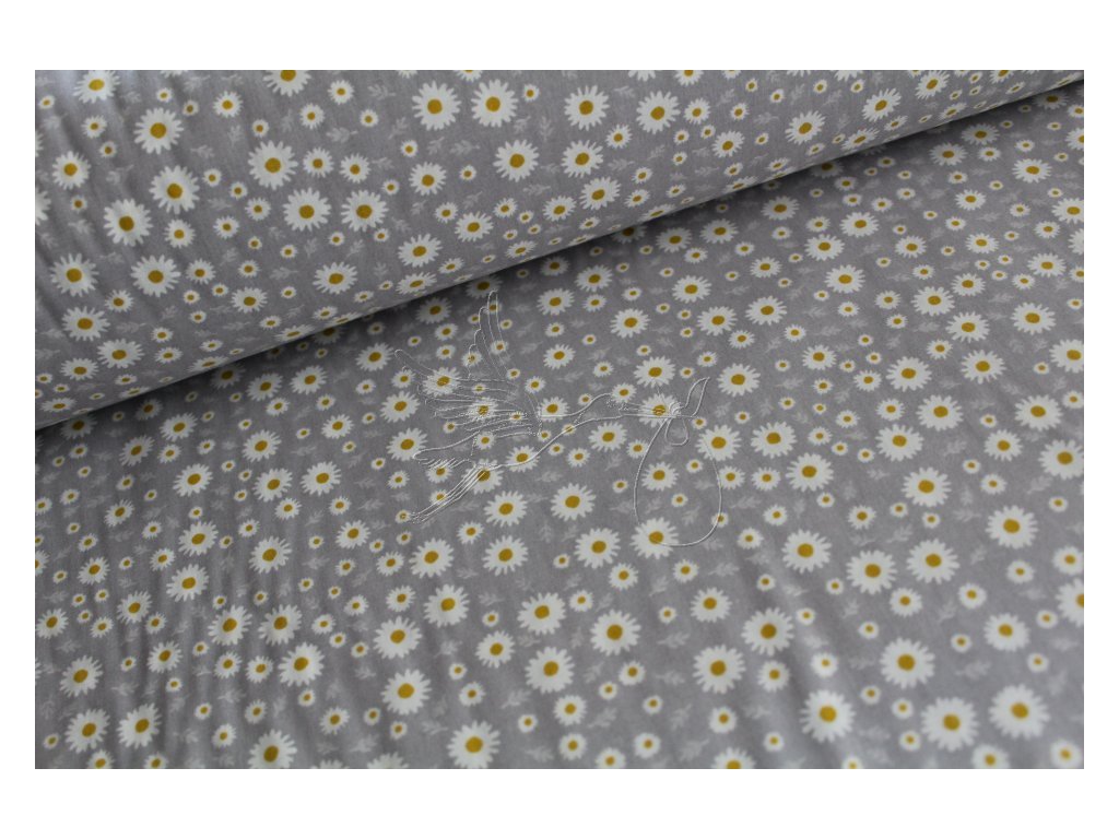 Sedmikrásky - na světle šedé - bavlněné plátno, šíře 240cm