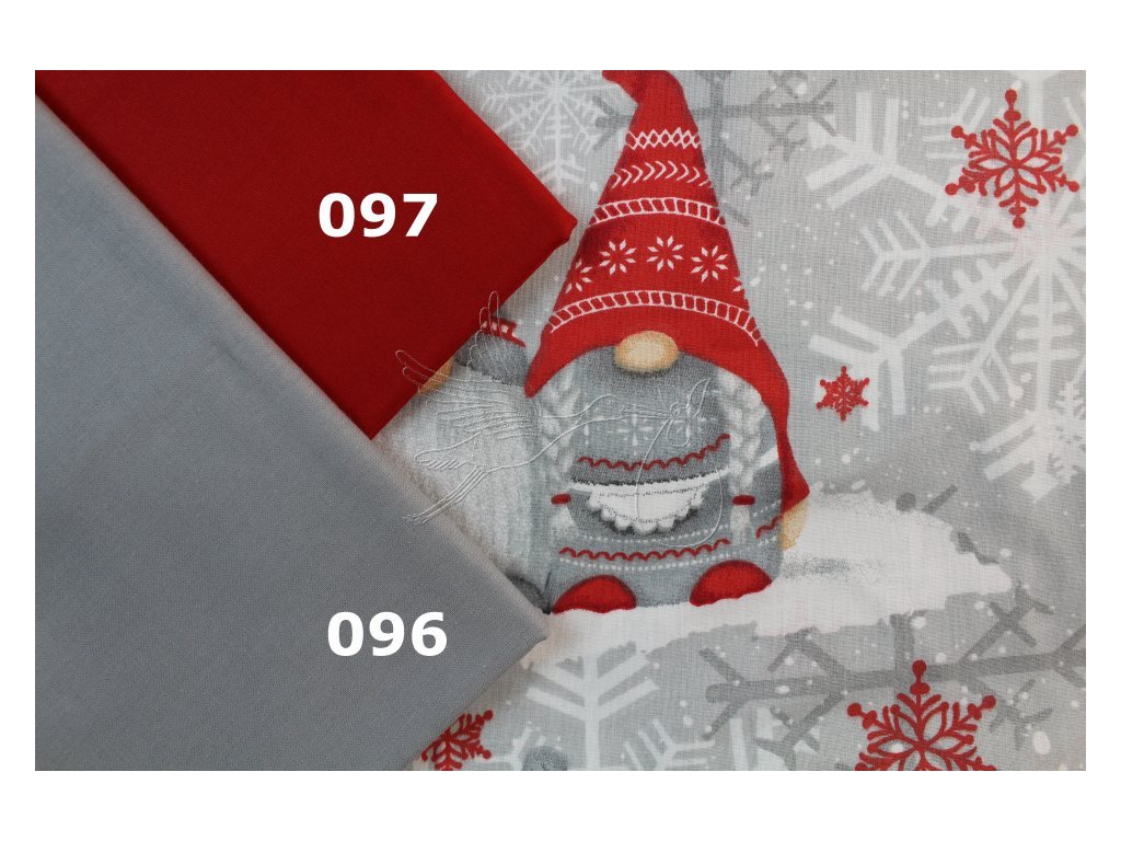 Skřítci na šedé - červení - bavlněné plátno, šíře 160cm