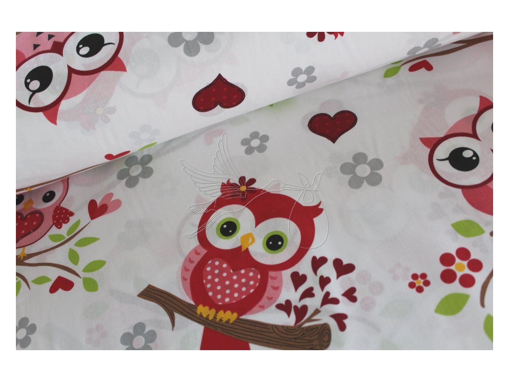 Sovy červené - bavlněné plátno, šíře 240cm - zbytek 0,38m