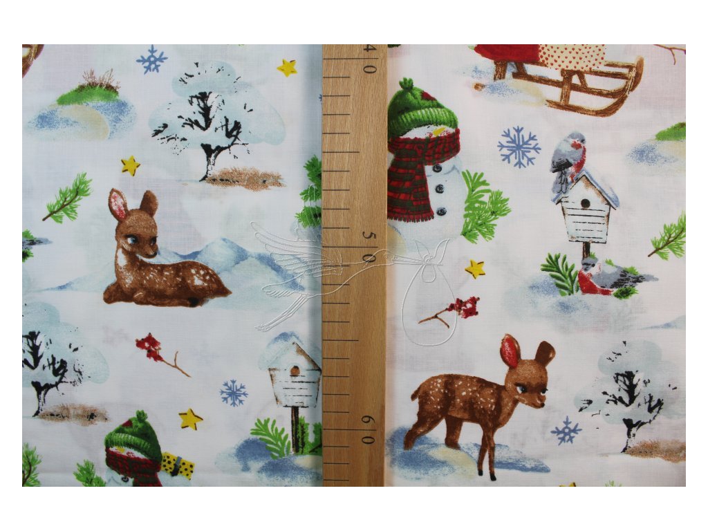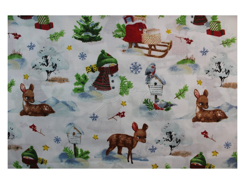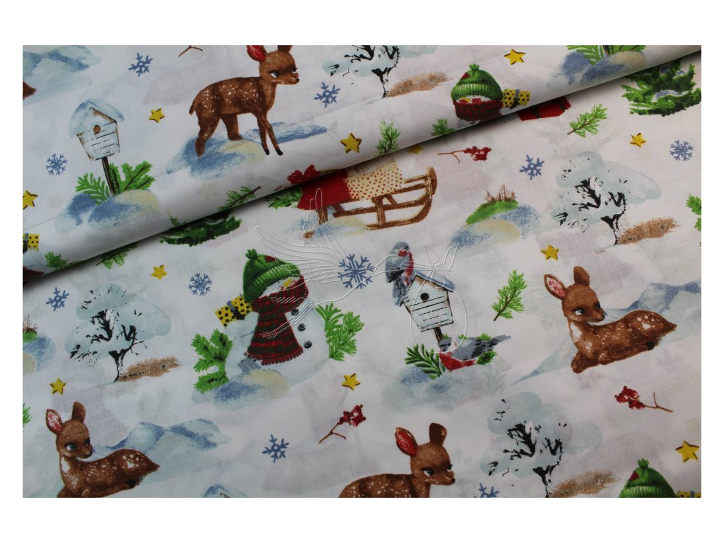 Srnka, sněhulák a sáně - bavlněné plátno, šíře 160cm