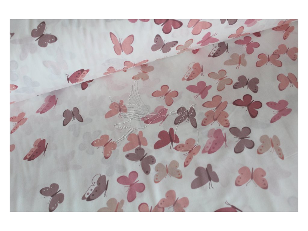 Starorůžoví motýlci na bílé - bavlněné plátno de luxe, šíře 240cm - zbytek 0,44m