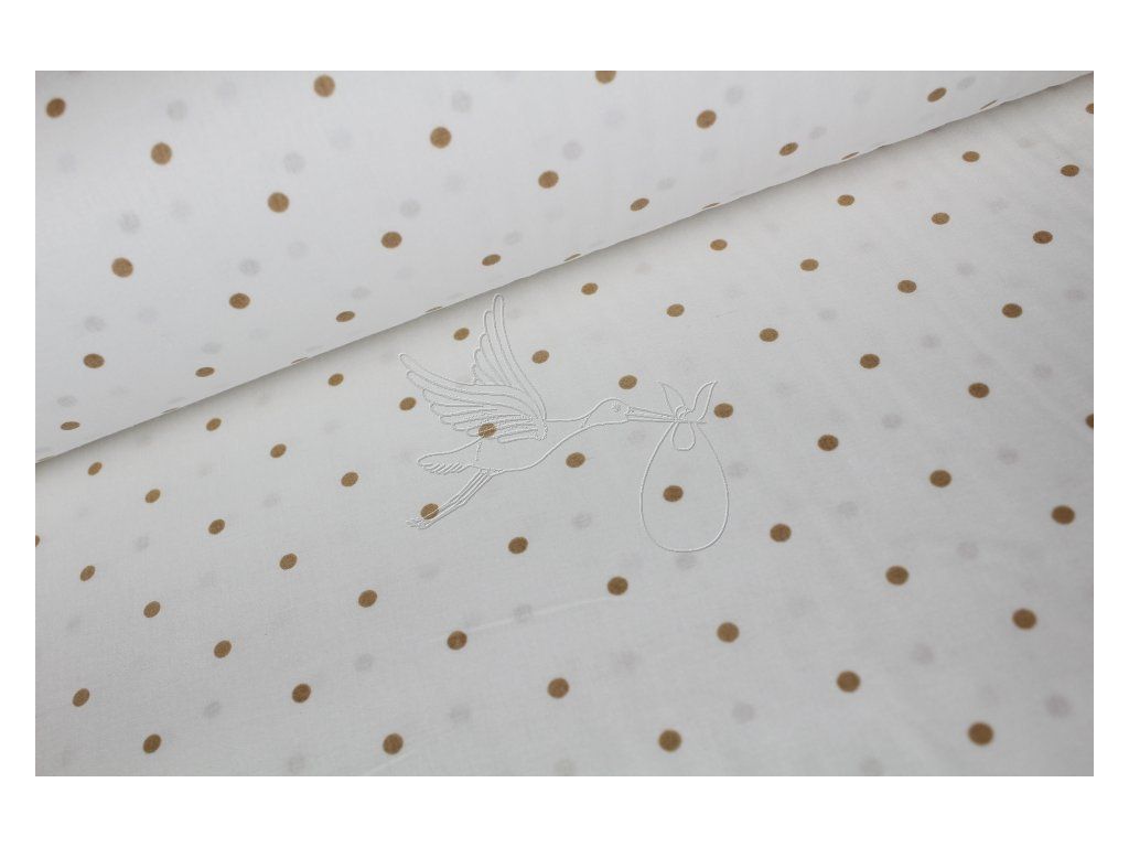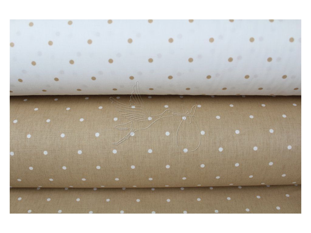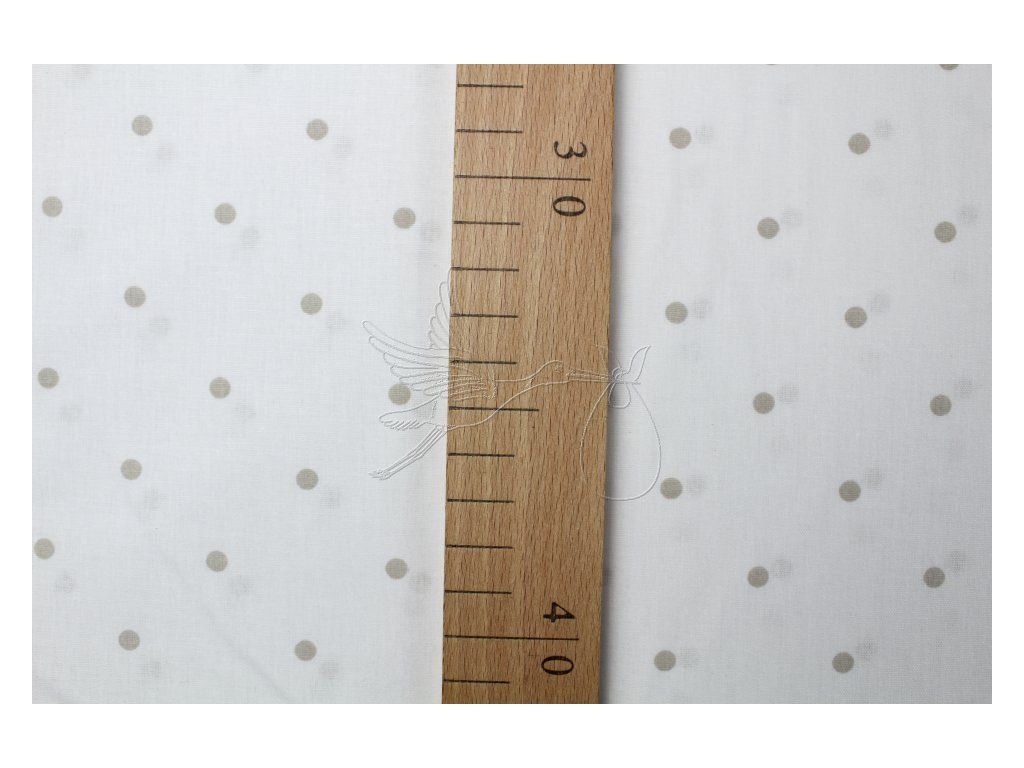 Světle hnědé puntíky na bílé - bavlněné plátno, šíře 240cm - zbytek 0,65m