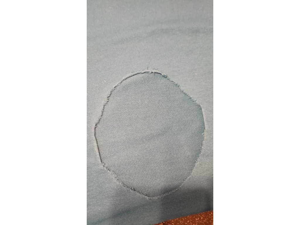 Na látce je flíček a díra cca 13cm. Viz foto.