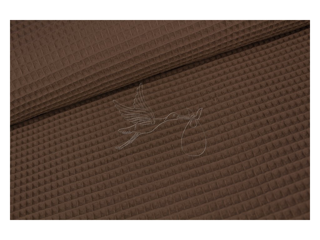Bavlněná látka s vaflovou vazbou hnědé barvy.