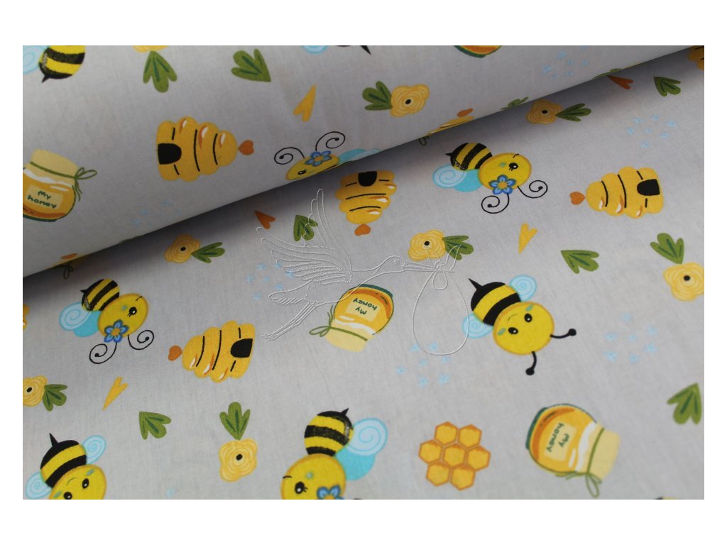 Včelky na šedé - bavlněné plátno, šíře 240cm - zbytek 0,5m
