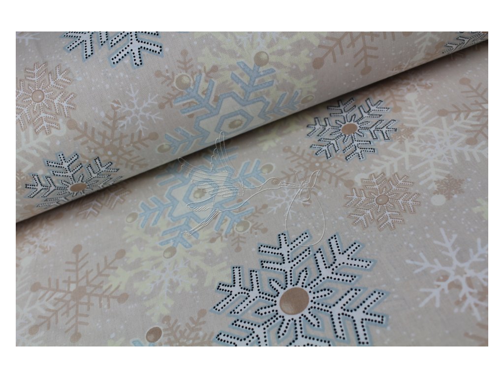 Vločky na béžové - bavlněné plátno, šíře 240cm