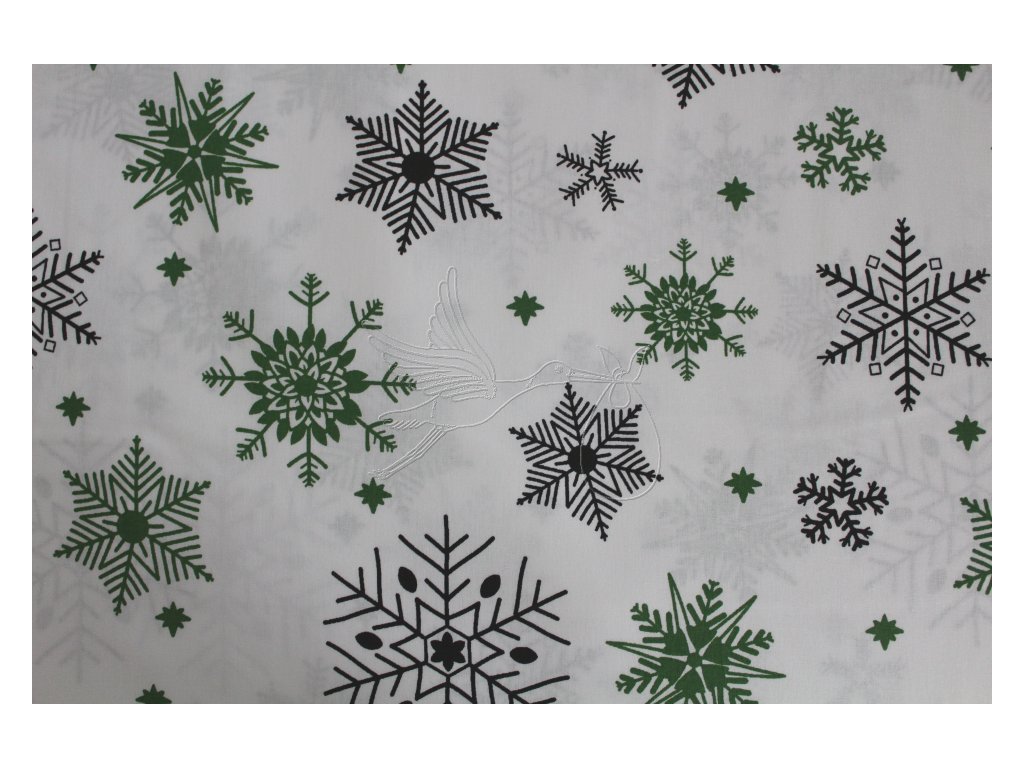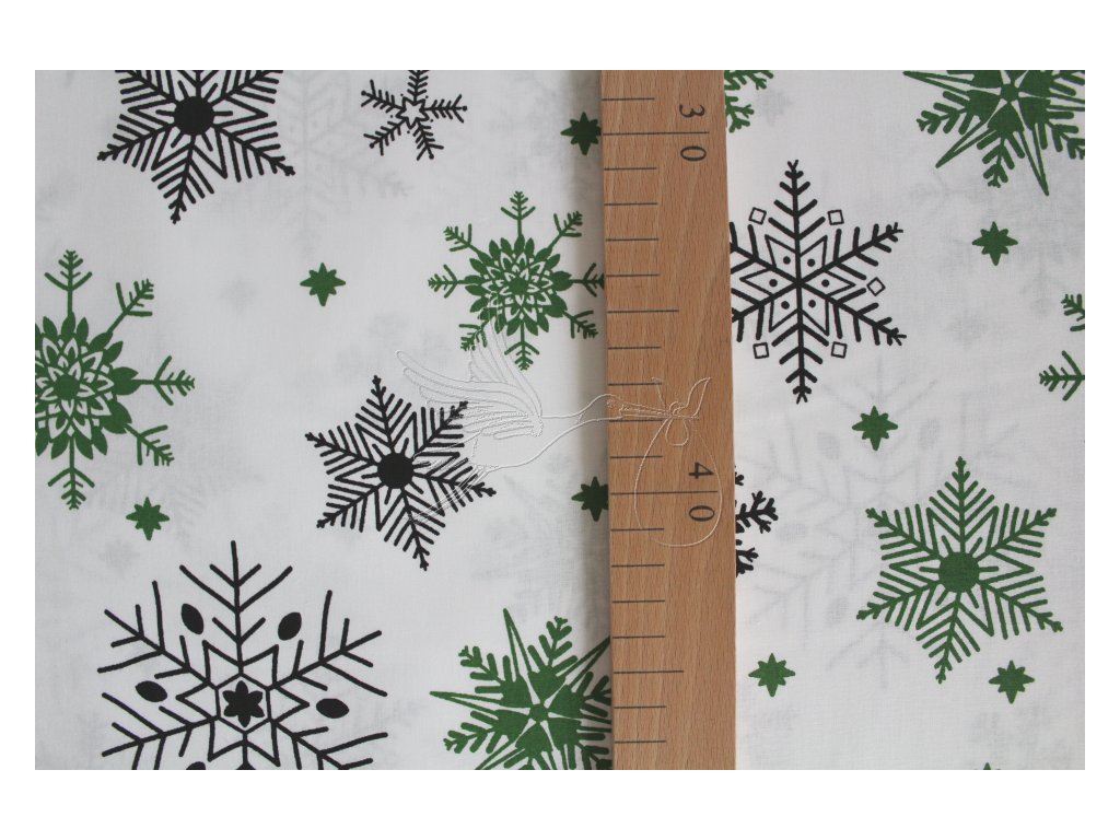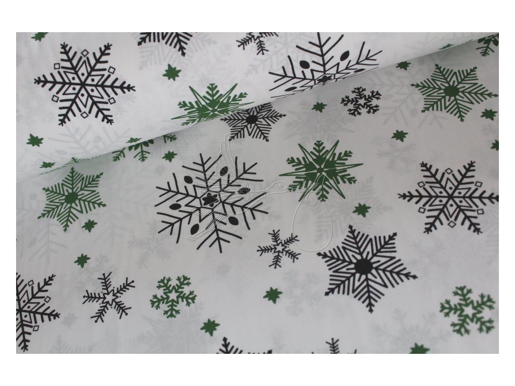 Vločky na bílé - zelené a černé - bavlněné plátno, šíře 240cm - zbytek 0,57m