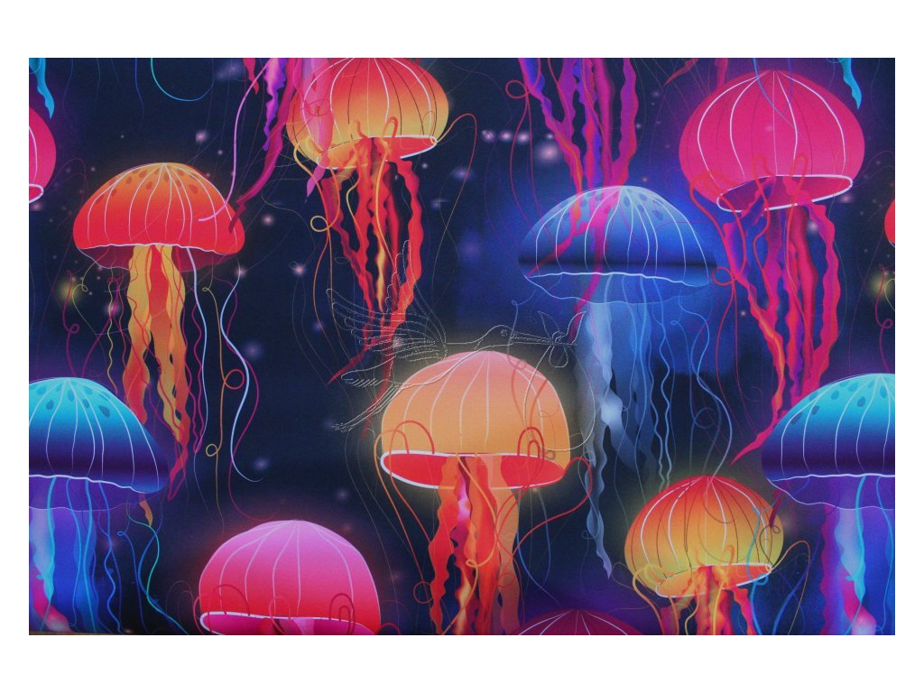 Zimní pružný softshell 18/12 vzorovaný - Medúzy - zbytek 0,96m