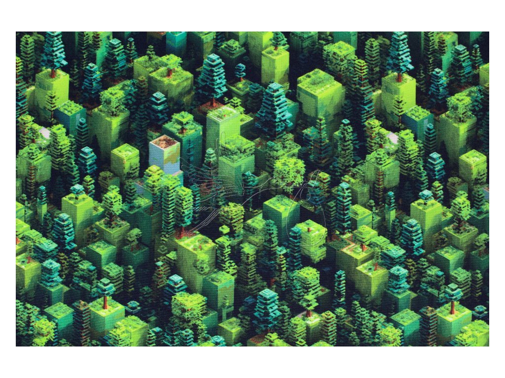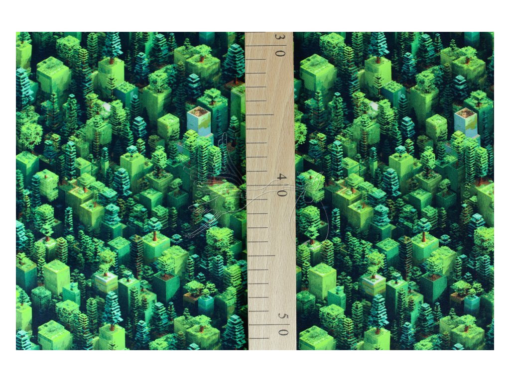 Zimní softshell s motivem kostiček do tvarů lesa.
