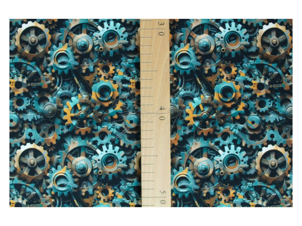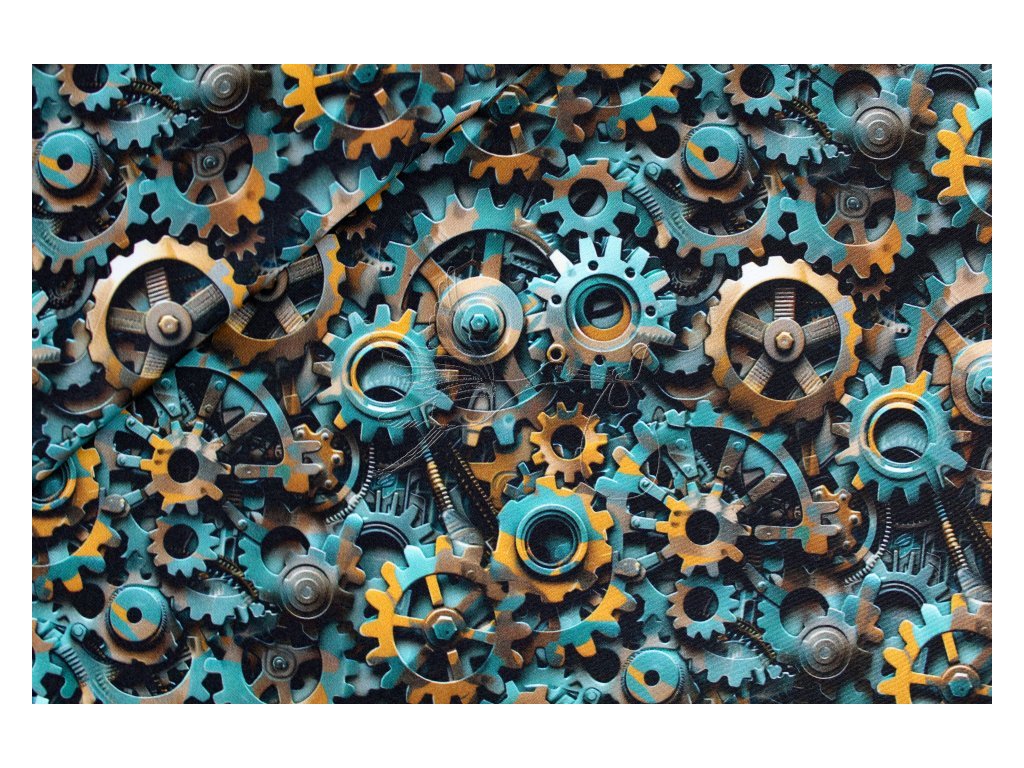 Zimní softshell s motivem ozubených kol.