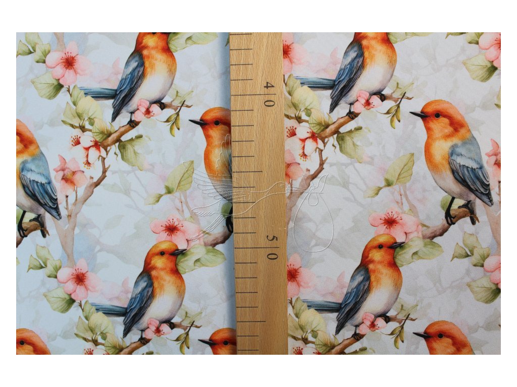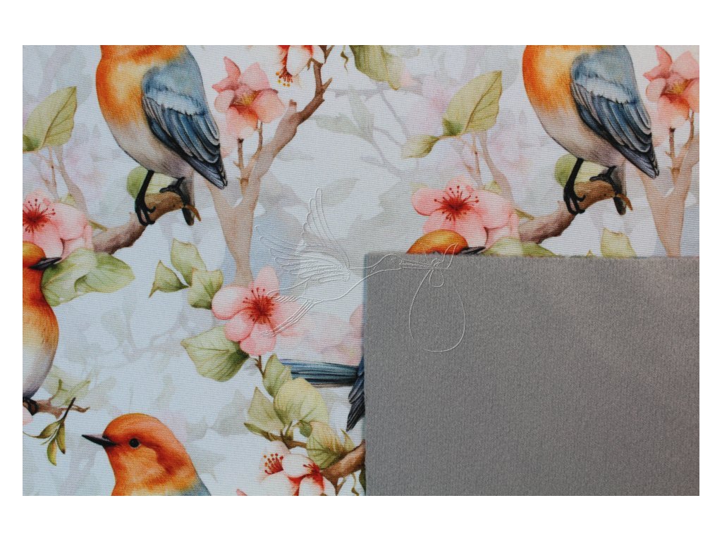 Zimní softshell se vzorem ptáčků.