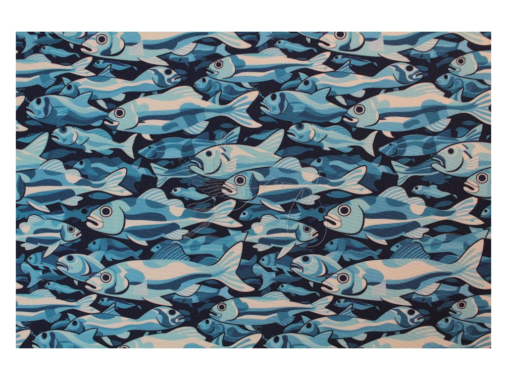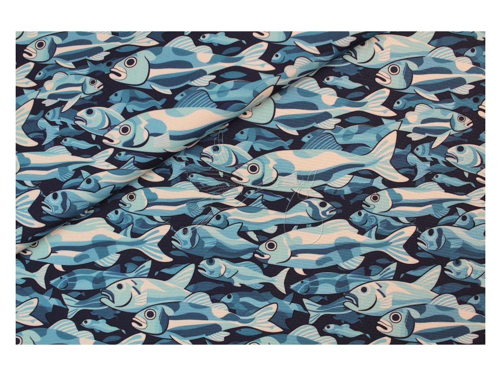 Zimní softshell se vzorem rybek.
